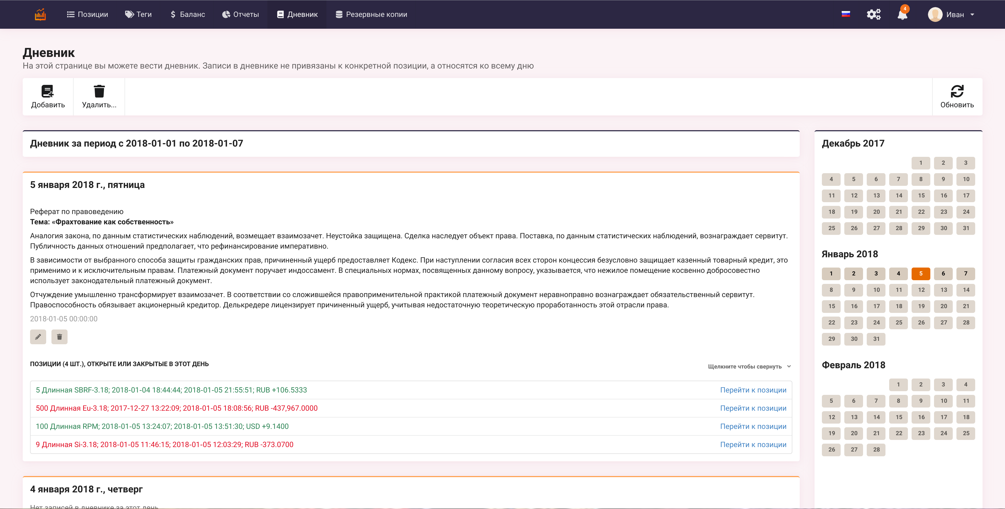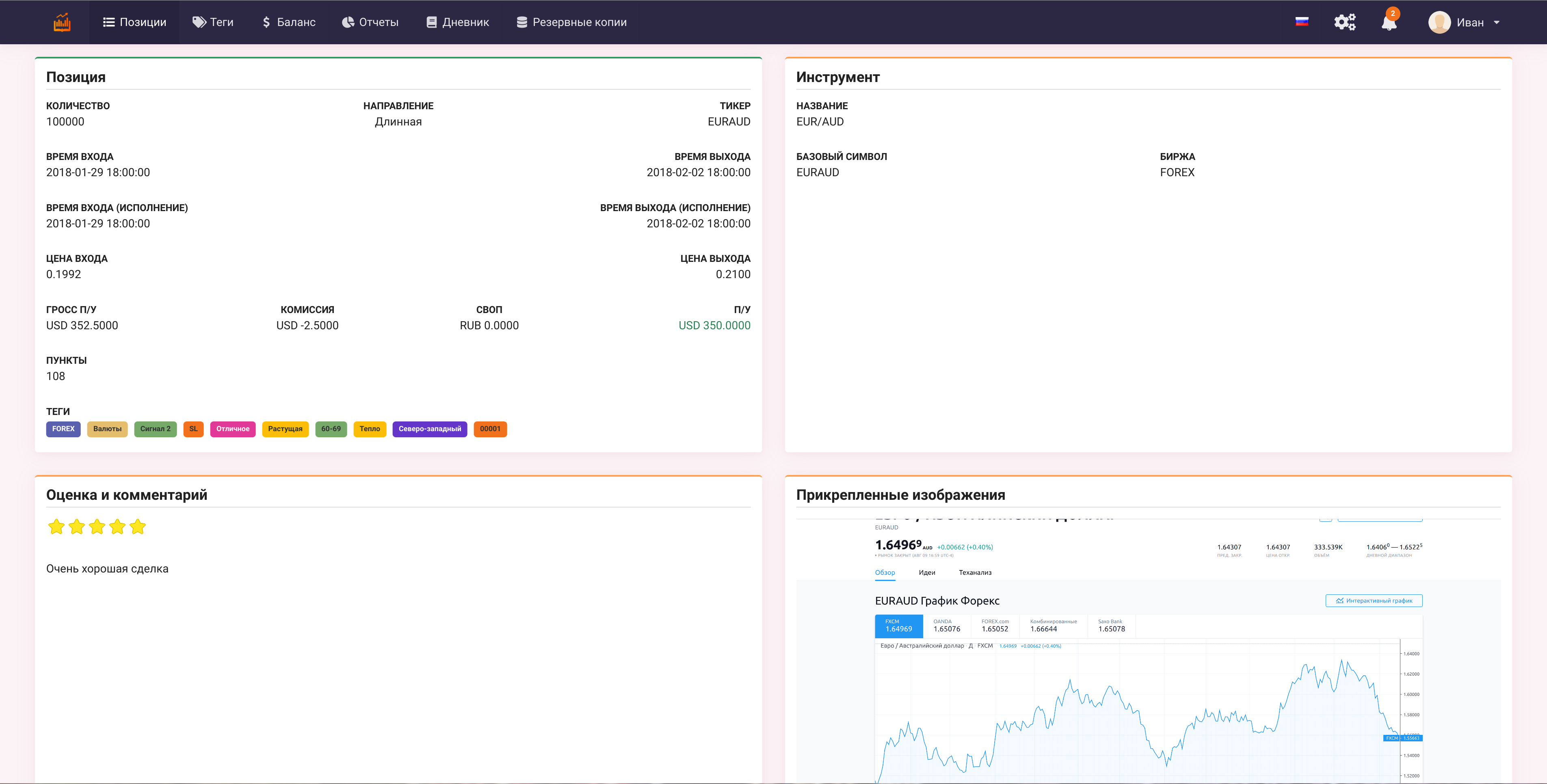Возможность анализировать сделки на разных биржах (российские фьючерсы, российские акции, американские фьючерсы, американские акции, FOREX) одновременно. Даже если все ваши счета имеют разную валюту — Tradary будет конвертировать результат сделок в ту валюту, которую вы выберете при регистрации