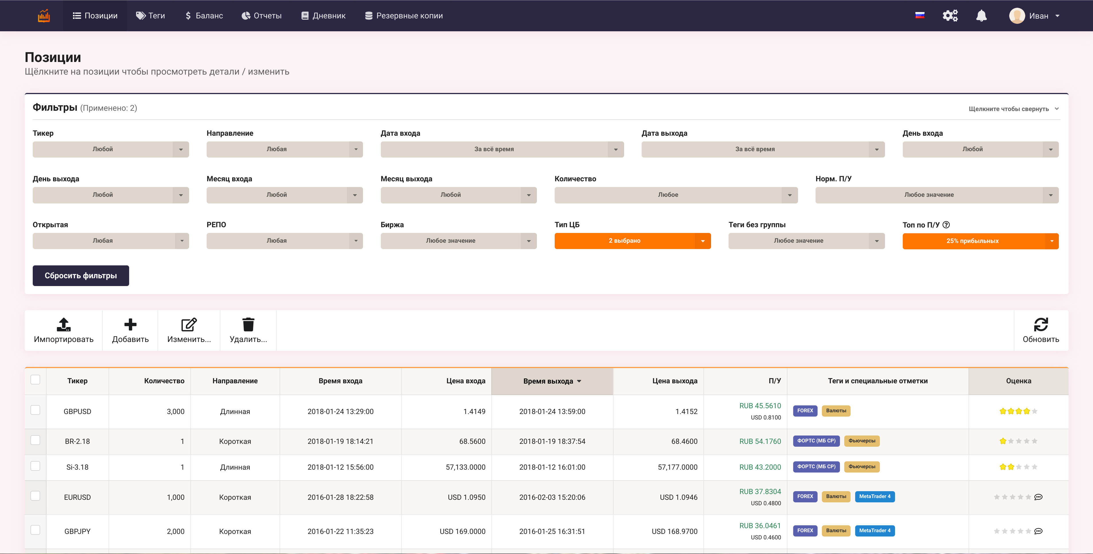 Используя графики и фильтры, выявите закономерности в своей торговле и подумайте чем они обусловлены