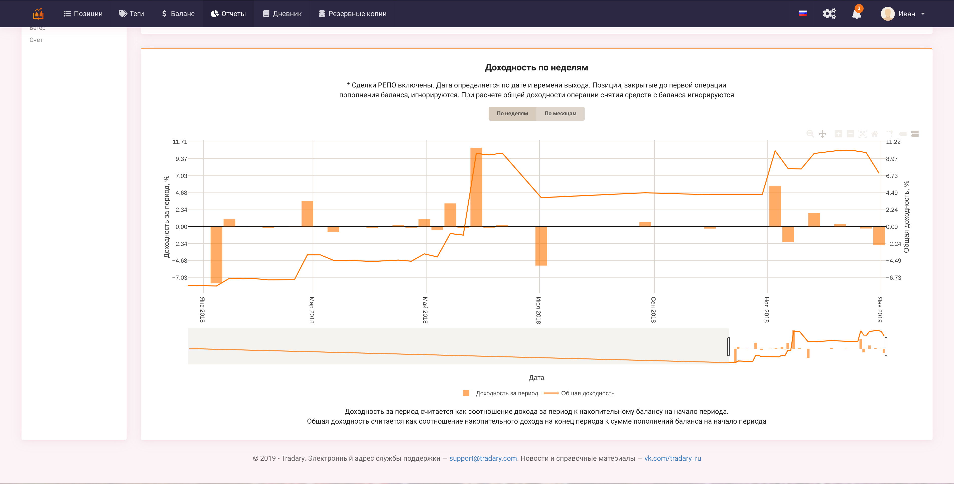 Доступные виды отчетов Отчет — набор графиков/таблиц, позволяющий анализировать результаты торговли в разрезе какого-либо показателя. Не следует путать с брокерским отчетом |